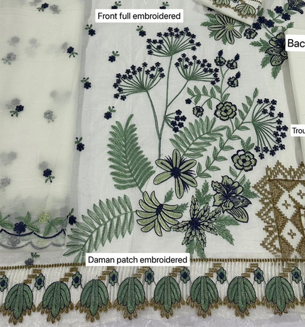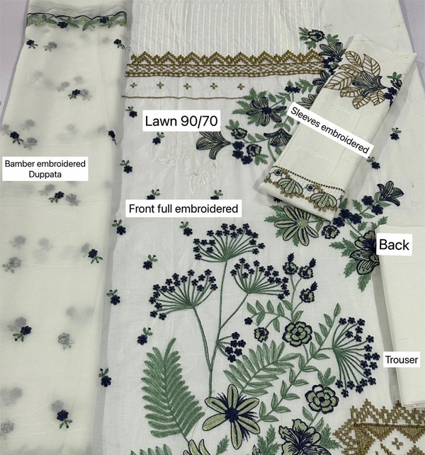 Elegant Embroidered Lawn Dress with 4-Side Emb. Chiffon Dupatta (Unstitched) (Code:180370)